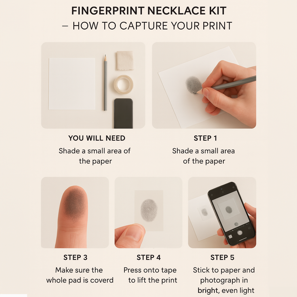 Our skilled engravers carefully trace and etch the fingerprint onto your necklace, creating a meaningful piece made just for you.