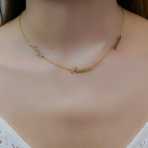 La nostra collana con nome personalizzato è un modo significativo per tenere le persone a te care vicine. Personalizzala con fino a cinque nomi — che siano il tuo partner, i tuoi figli, i migliori amici o la famiglia. Realizzata per l'uso quotidiano e consegnata in una bellissima scatola per gioielli, è il regalo perfetto per compleanni, anniversari o semplicemente perché.