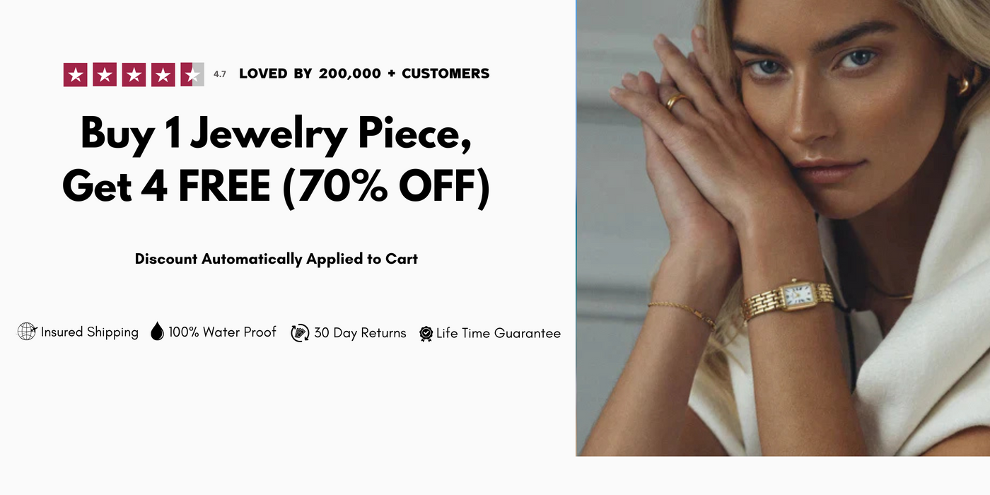For a limited time, buy 1 piece from our waterproof jewelry collection and get 4 more FREE—that’s 5 pieces for the price of 1!