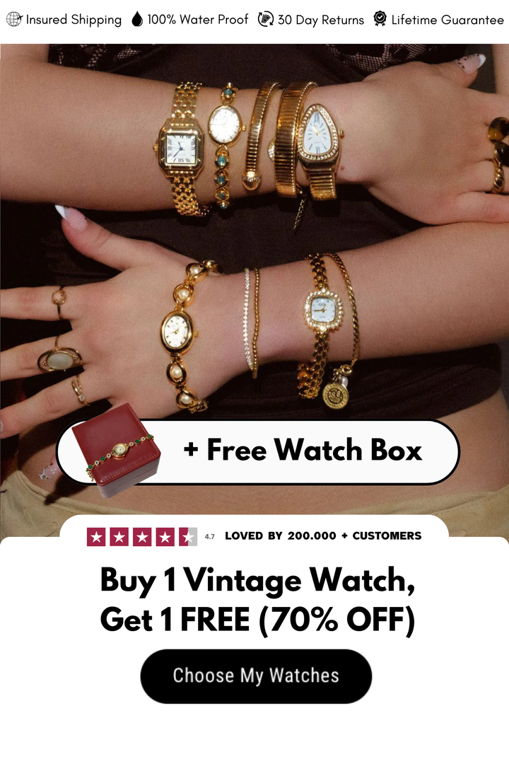 When you buy one vintage watch, you’ll receive a second watch for free — plus a premium watch box and a matching bracelet included at no extra cost.