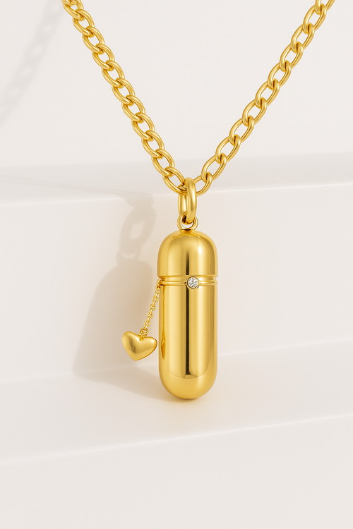 Handcrafted with 316L stainless steel and real 18k Gold, your Manifestation Capsule Necklace is designed to last a lifetime.